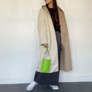 フロントホック使いでシンプルに仕上げてあるので、(左)の着用のようにフードコートのフロントホックを閉めてコートを主役使いで着るものオススメ◎