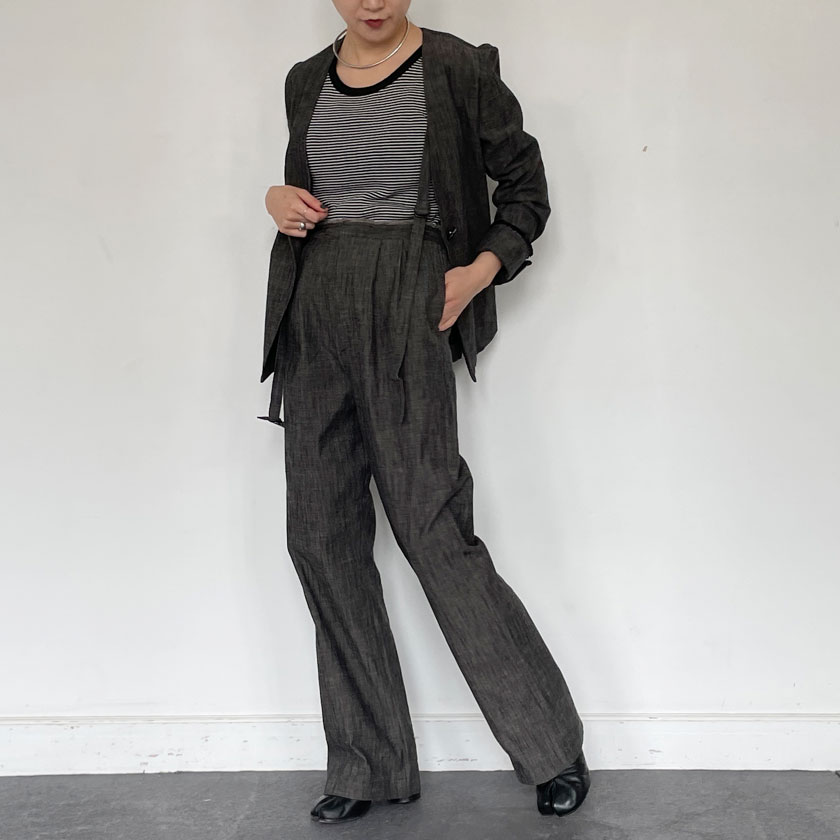 【チャコール(グレー)カラー】テーラードジャケット+パンツのセットアップコーディネート