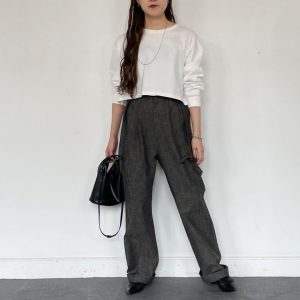 スカート:ENTO オーガニックコットンストレートパンツ(モデル着用サイズ1)