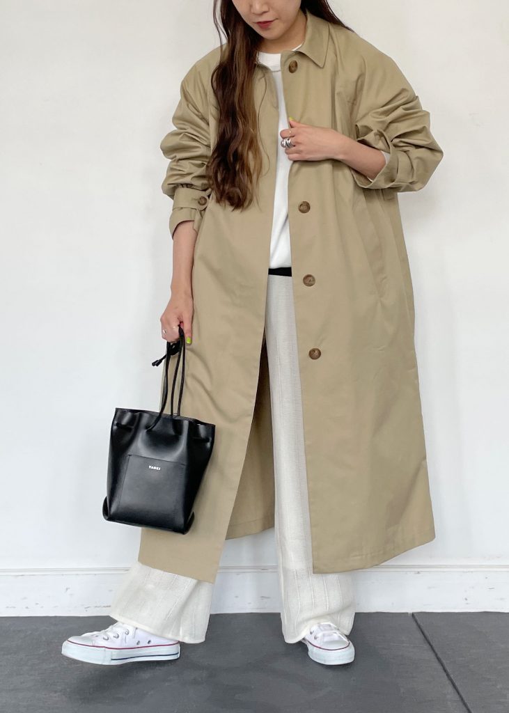 ベージュカラーのトレンチコートを持っている方は、スミクロカラーがおすすめ!