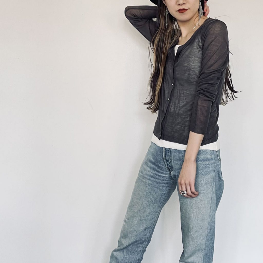 夏に選びたいカーディガンは、薄手で透け感があり、軽い素材のものを選ぶと◎