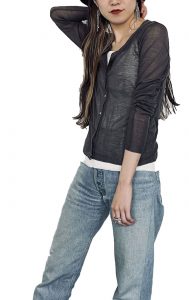 脇に縫い目のない縫製方法(ホールガーメント)なので透け感を邪魔せず、快適な着心地で環境にも優しいカーディガンです。