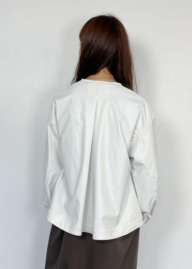 気軽に着やすいデザイン・着心地・また自宅で洗濯機洗いができるマシンウォッシャブルにした、こだわりのエコレザーブルゾン。