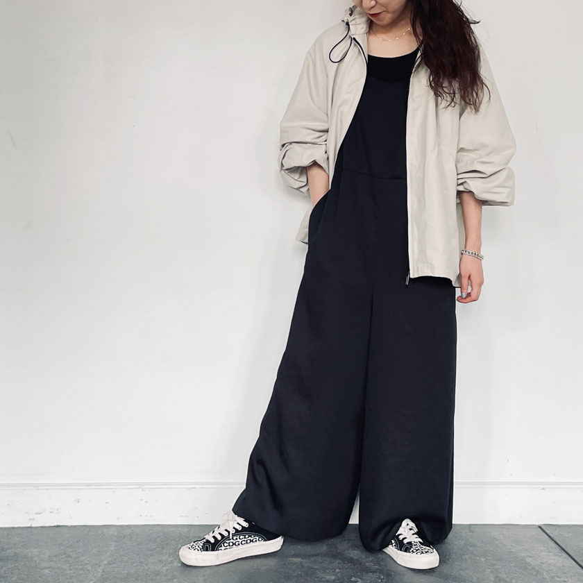 リラクシーなキャミサロペットにフレアーブルゾンを羽織ってゆるっと可愛いコーデに。