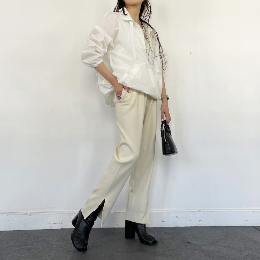 裾にはスピンドルゴムがついており、絞って丸みを帯びたシルエットにアレンジ可能◎