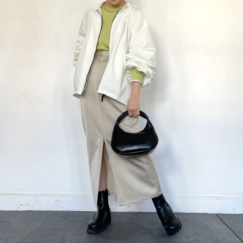 程よくマットなナイロン素材なのでスポーティーになりすぎず、カジュアルからモードまで幅広く着回せる1枚。