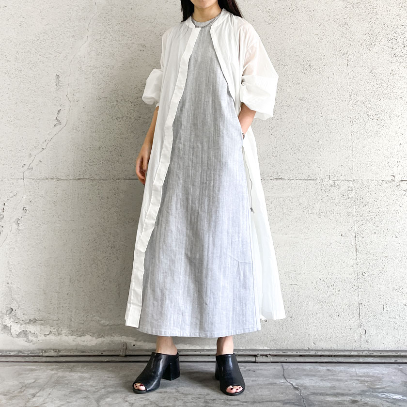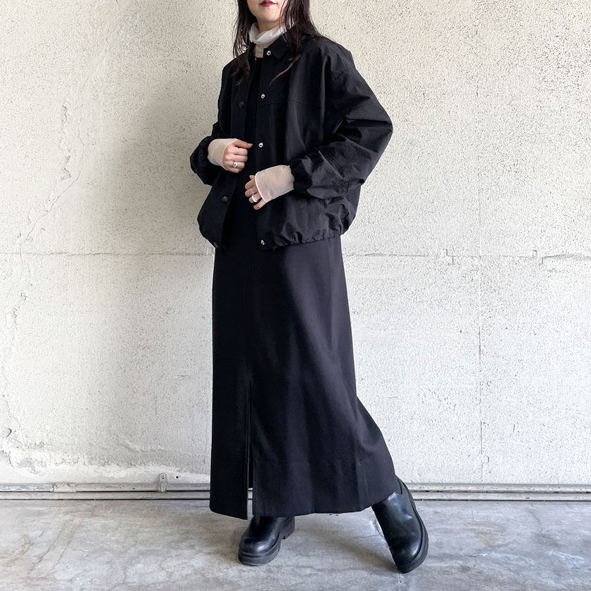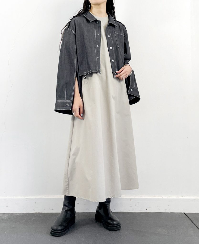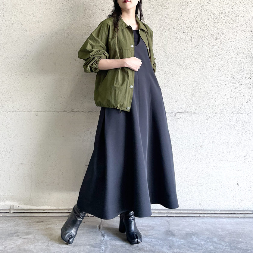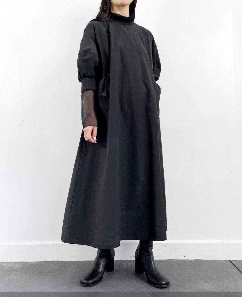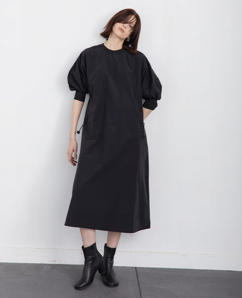 ややハリ感のある軽い着心地で、雨の日も1枚でサマになるワンピース。