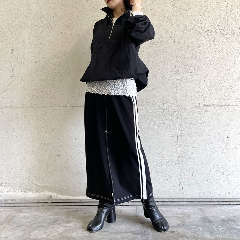 素材感やディテールにスポーティーさを出しながら、シルエットはフェミニンに仕上げました。