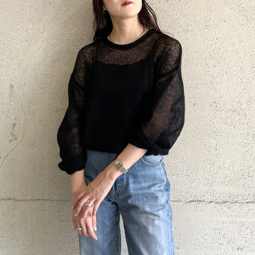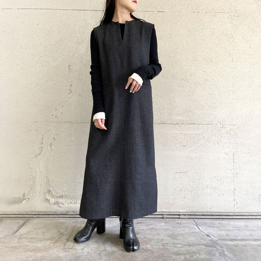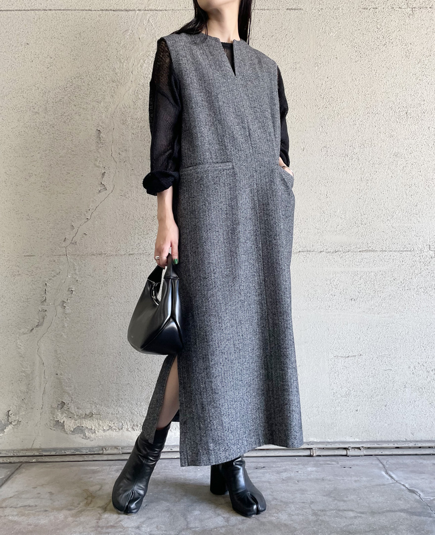 | one-piece / ヘリンボーンスキッパーワンピース | inner / モヘヤ混メッシュニットプルオーバー |