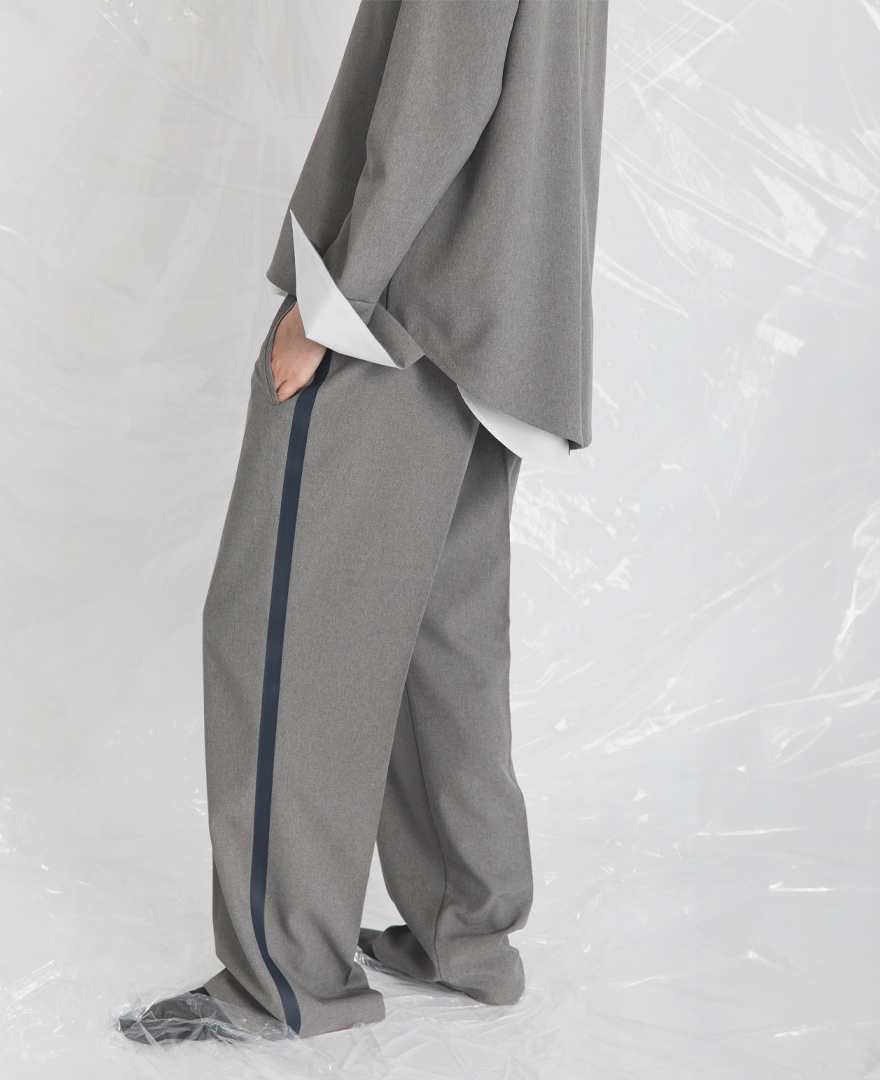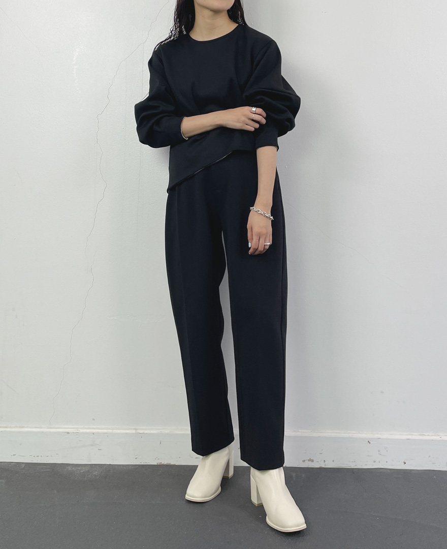 | tops / アシメヘムダンボールプルオーバー | pants / サイドタックパンツ |