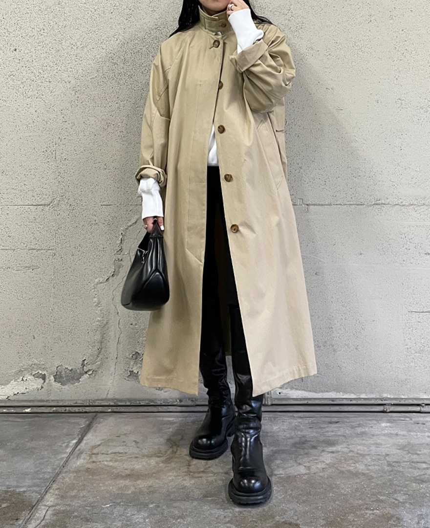 ✓肩回りが目立ちやすいため、コーデの重心を下げたロング丈