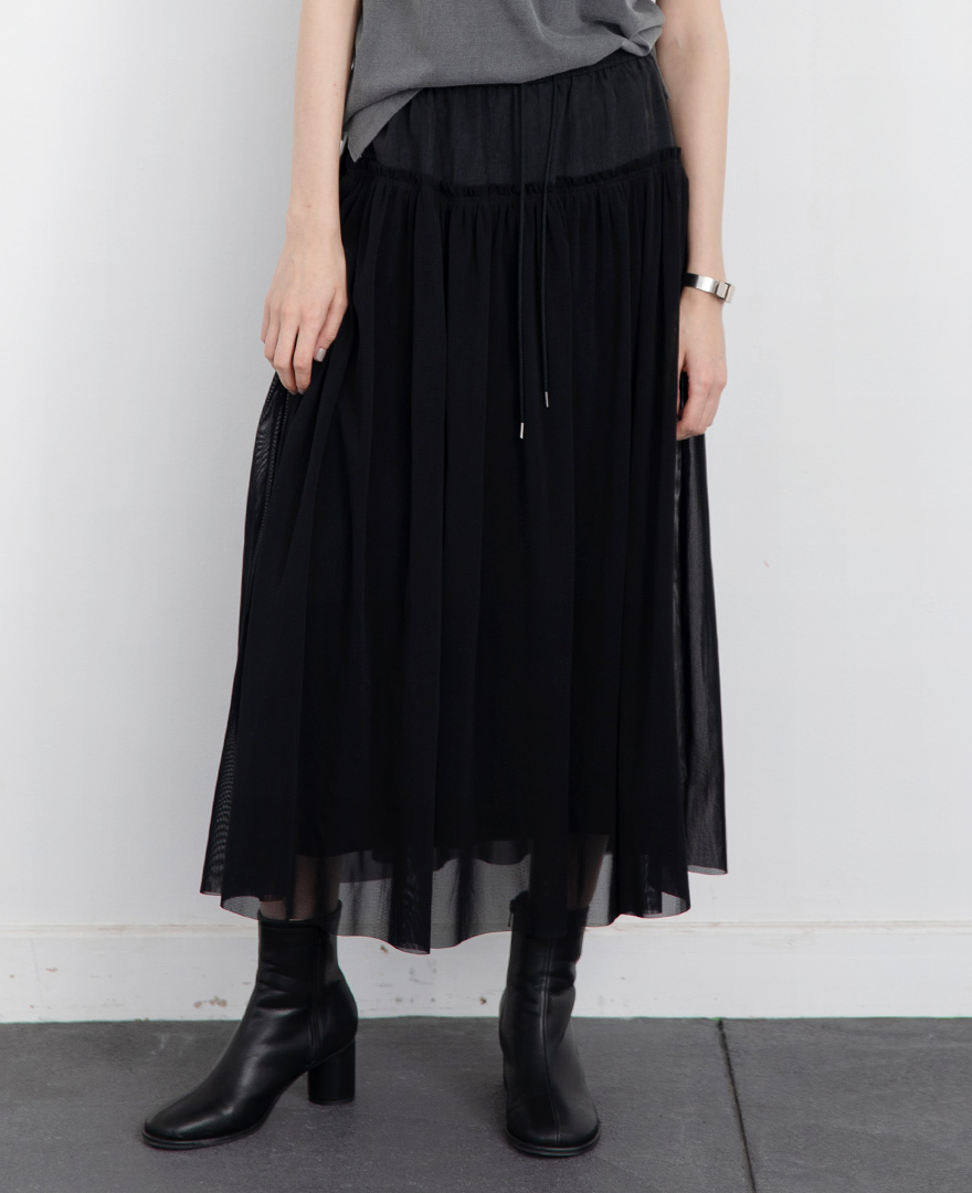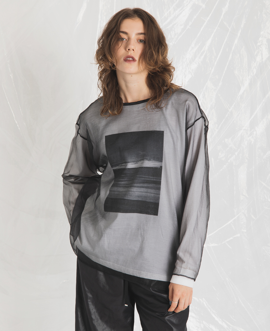 | オーガンジーレイヤードプリントロンT | グロッシーヴィンテージラフパンツ | 切替チュールスカート |