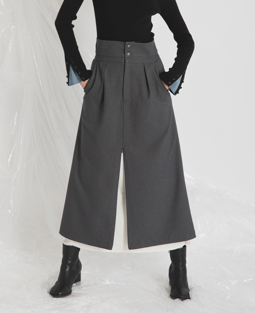 | tops / レイヤードデザインハイネックニット | skirt / ハイウエストレイヤードスカート |