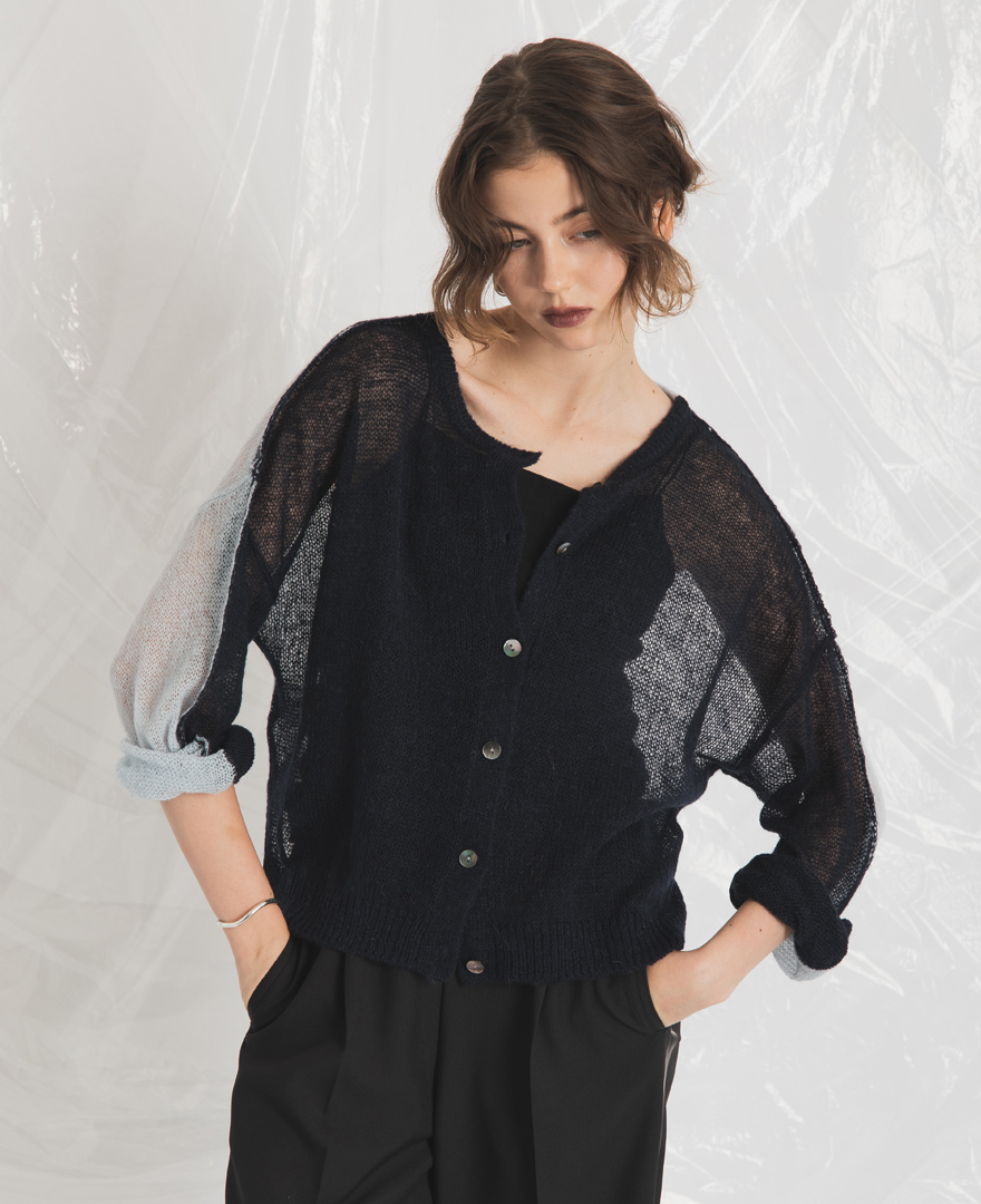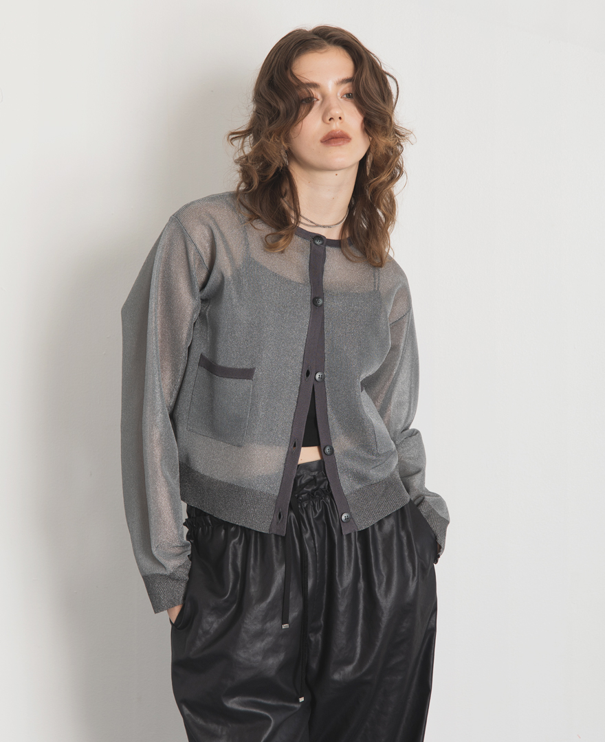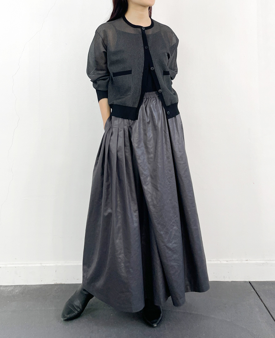 | tops / シアーラメカーディガン | pants / アシメタックスカート |