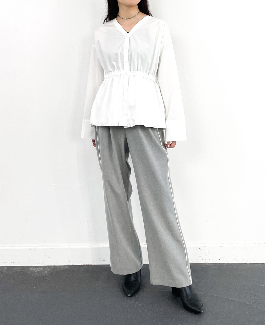 | tops / 2WAYペプラムバルーンブラウス | pants / アルガンオイルワイドパンツ |
