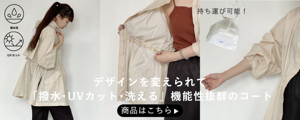 また、急な悪天候にも対応できるように防水・撥水機能を取り入れたりと、ストレスなくお洋服を楽しめるように。
