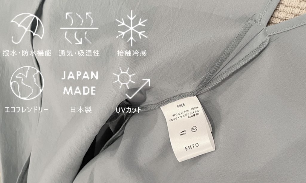 ENTOでは機能的な服に対し、オリジナルピクトグラムを商品ページに記載しており、どのような素材で機能性なのかを一目で判断することができます。