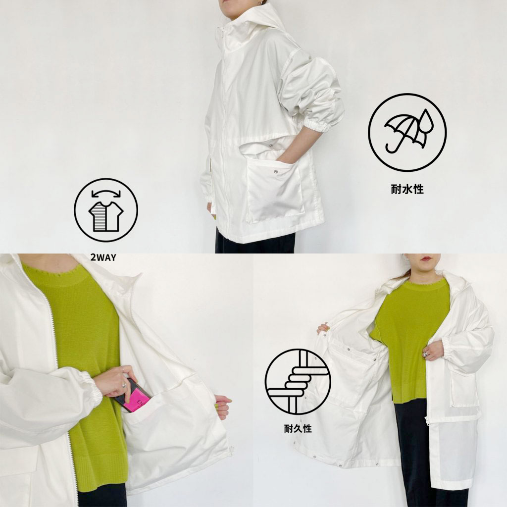 近年気温変動が曖昧になり、季節で着るものを分けることが難しい今だからこそ、天候に合わせて着丈を変えられる2way仕様を採用しています。