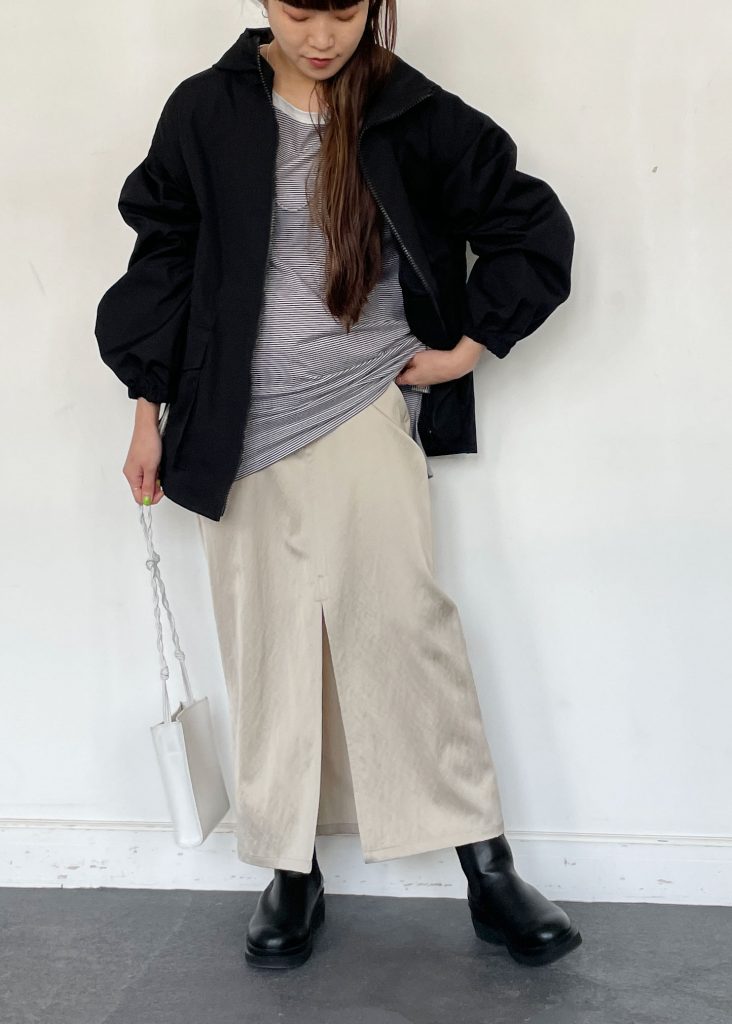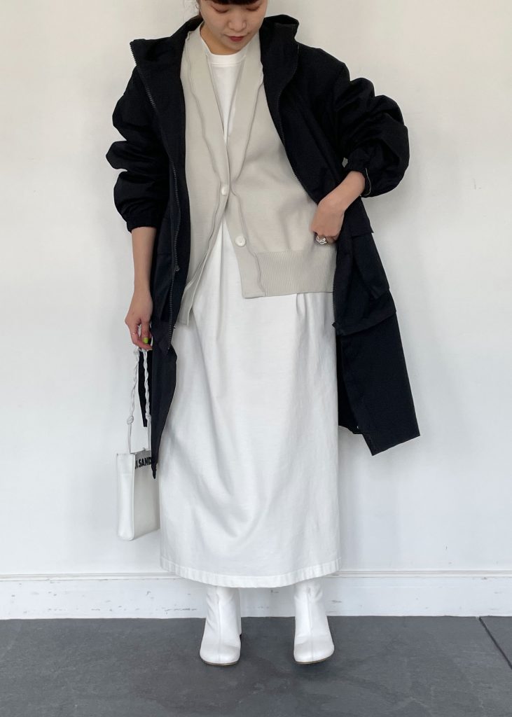 ロング丈で着用するとブラックの割合が多くなるのでかっこいい印象に◎