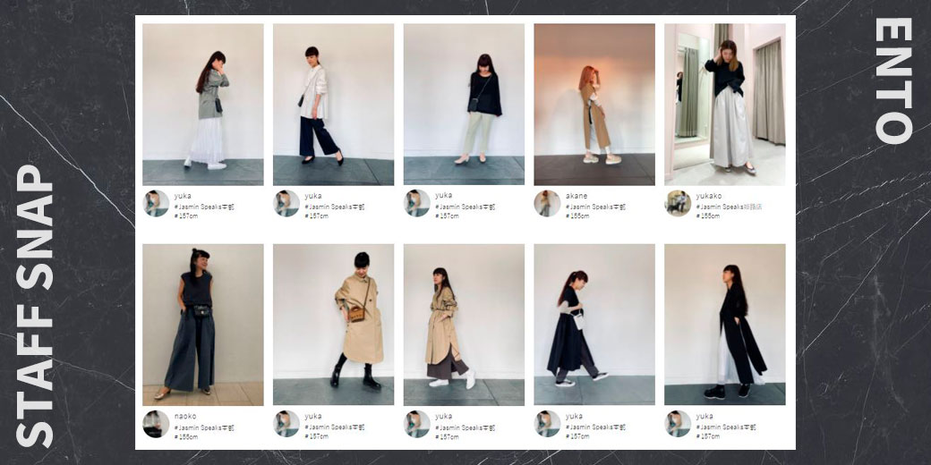 ENTOをトレンドアイテムや私物と組み合わせて色々なコーディネート紹介をしています。