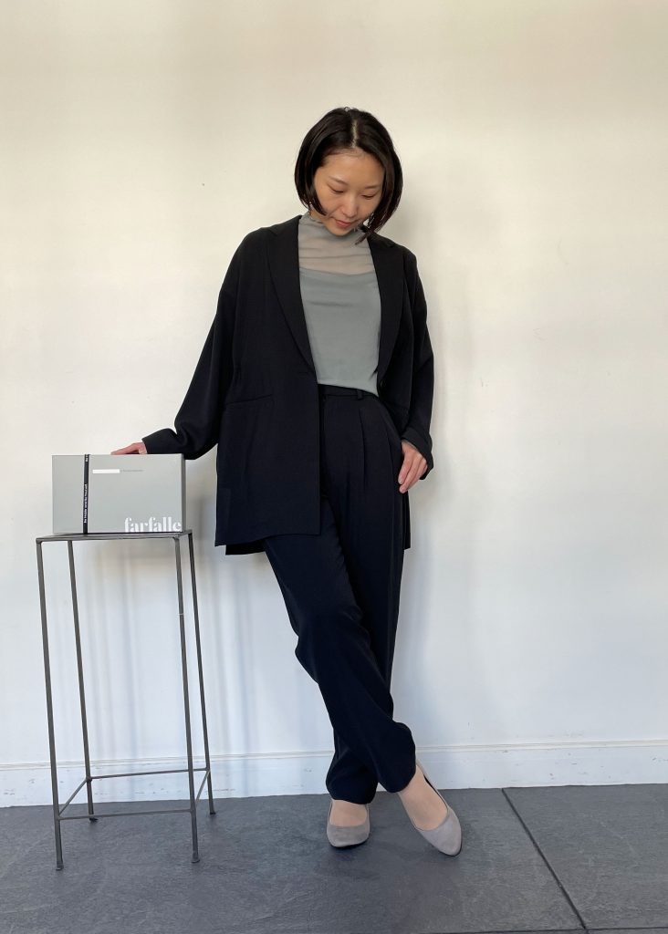 ENTO(エント)のお洋服とfarfalle CLASSICAL(ファルフーレクラシカル)のパンプスを使って、「ベーシックカラー」で作る大人のオフィスカジュアルレディースコーディネートをご紹介させていただきました。