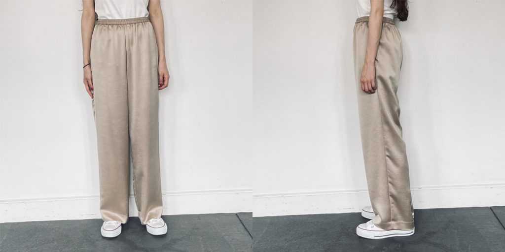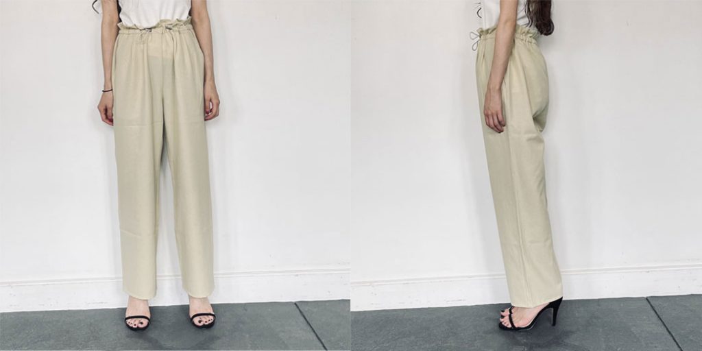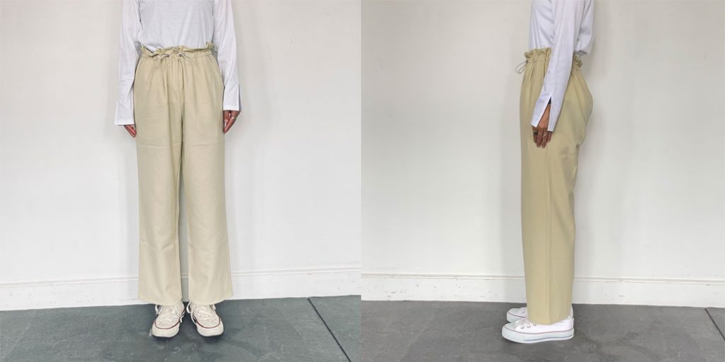 足首が見える丈感で、ウエストやヒップ周りが少し窮屈でした。