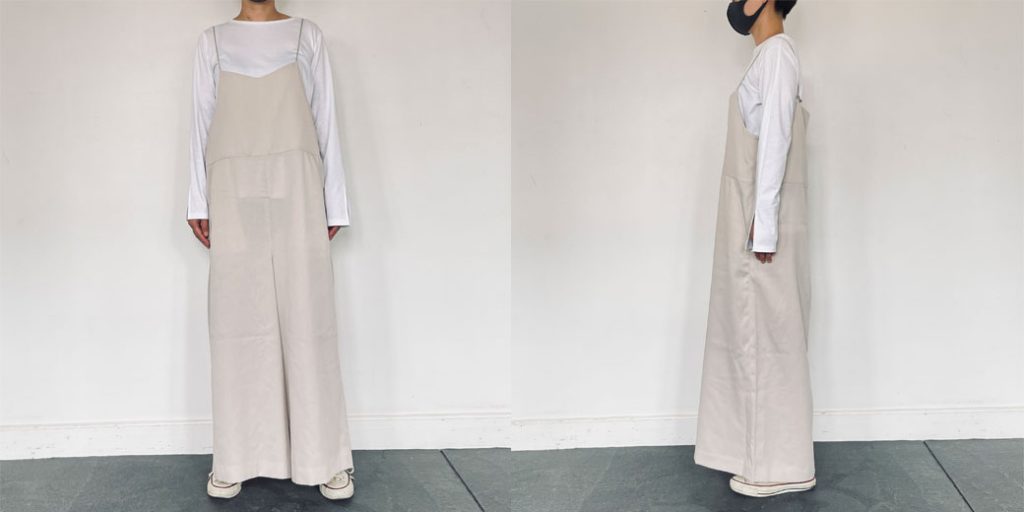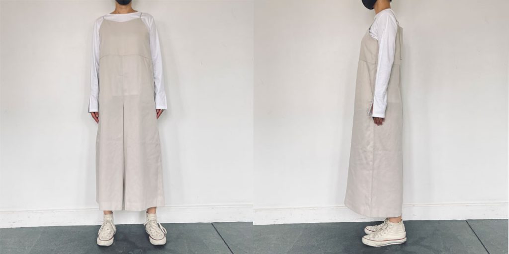 ヒールを合わせると、少しスッキリとしたバランスで着用できました。