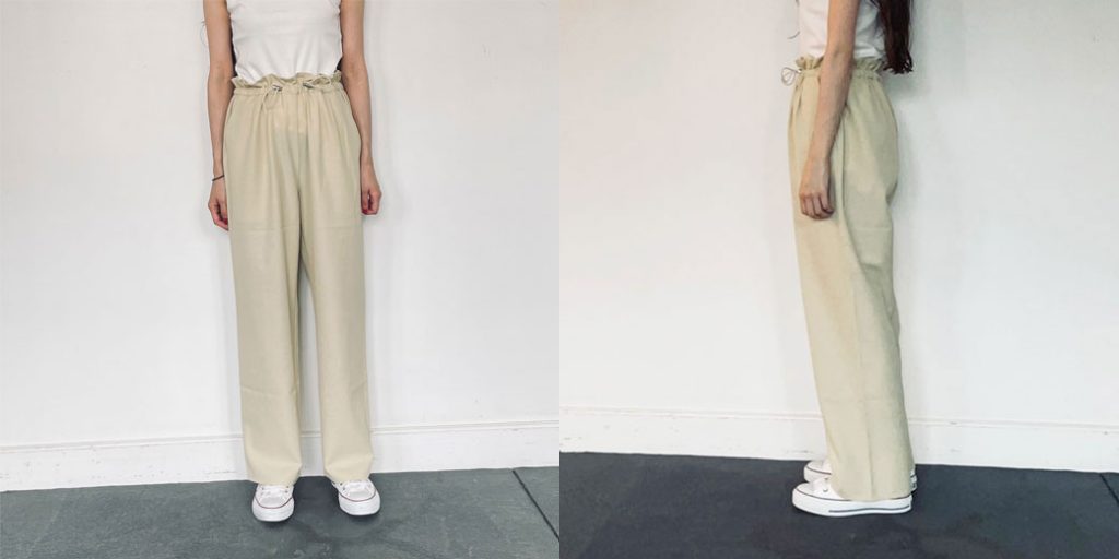 ウエストがゆるく腰履きになってしまう方は、シューズによっては地面につきそう。