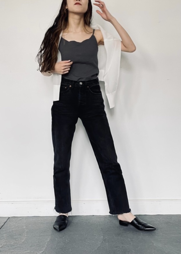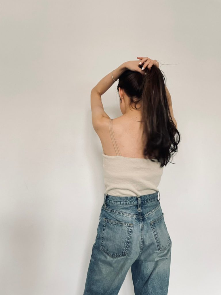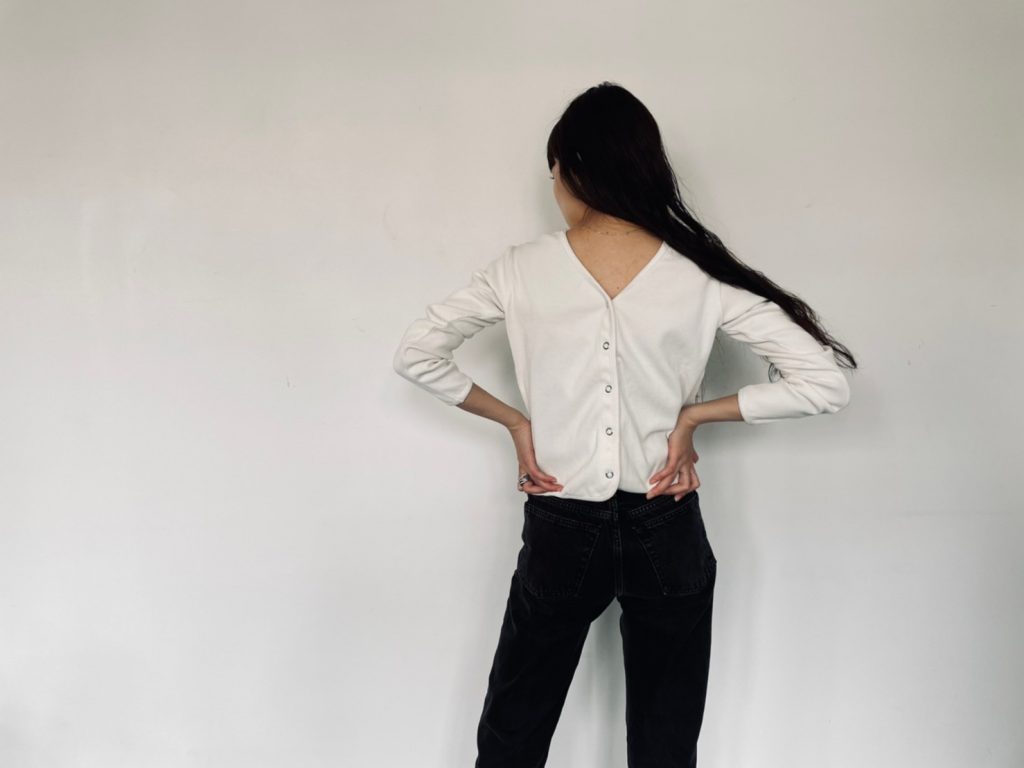 1枚で着た時にはリラクシー感を大切に、インナーとして着た時には背中開きの服にも合わせられるように。