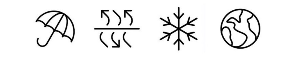 ENTOでは、その日の天気や気温に合わせてお洋服を選ぶ時に、視覚的に機能を分かりやすくしたり、せっかくエコな服を着ているんだったら意識的に感じていただければ、という思いで品質表示にピクトグラムを印字しています。