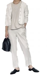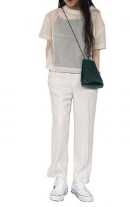 参考にしていただきやすいように、ベーシックカラーのアイテムを使って、ホワイトパンツ1週間着回しコーディネートをご紹介します。