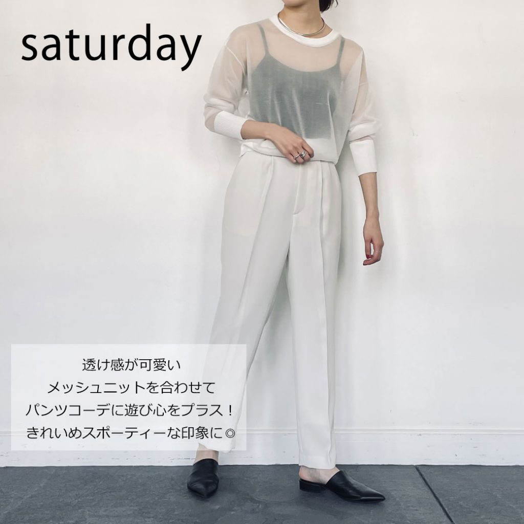 透け感が可愛いメッシュニットを合わせてパンツコーディネートに遊び心をプラス!