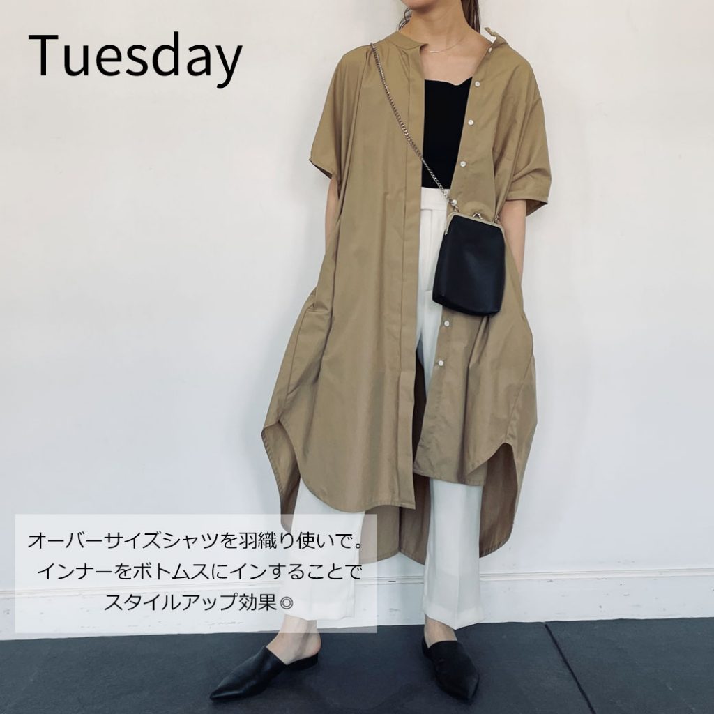 【Tuesday】オーバーサイズロングシャツをメインに着こなして