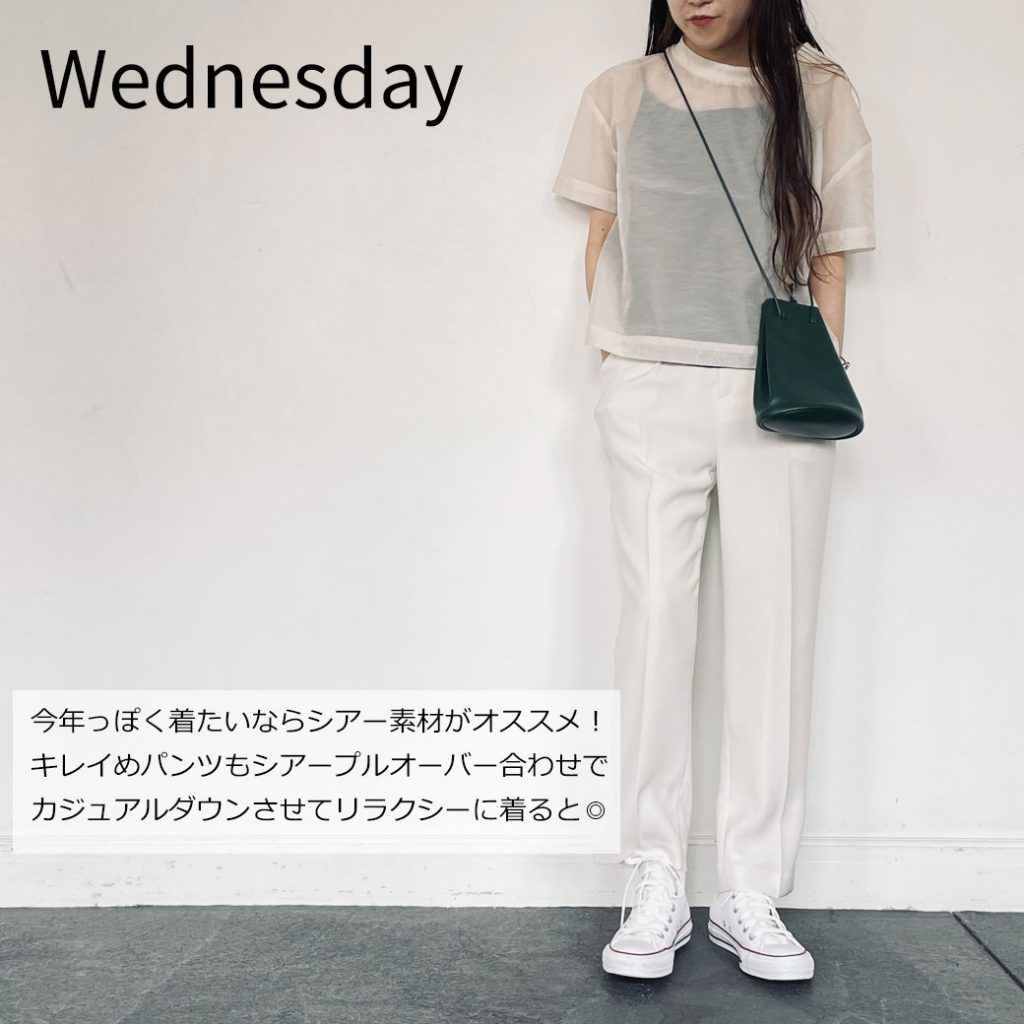 【Sunday】ホワイトパンツにカラーアイテムを取り入れて