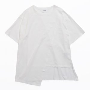 大胆なアシンメトリーデザインが特徴のカットソーをコーデの主役に。