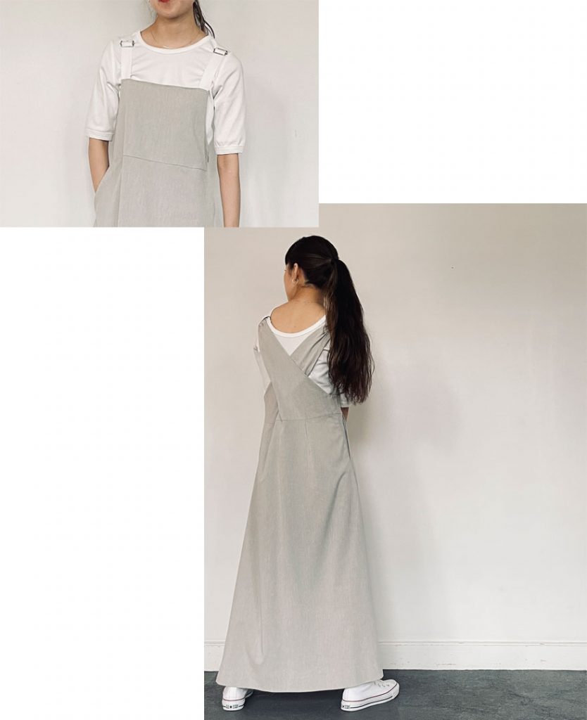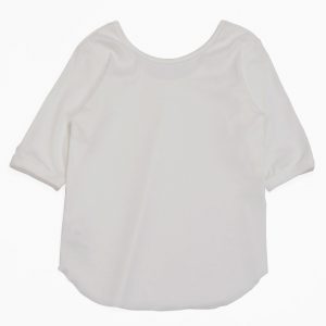 先ほどご紹介したバックオープンカットソーと同素材を使用した、エコフレンドリーで印象の違うネックで着回しを楽しめる、スクエアネックとヘンリーネックの2WAY仕様。