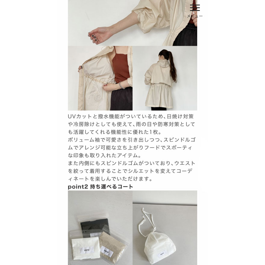 ENTOの商品ページでは、それぞれのアイテムの特徴やポイントなどを、画像を用いて詳しく紹介しているので、お店で接客を受けるように、着こなしのコツについてもお楽しみいただけるようになりました。