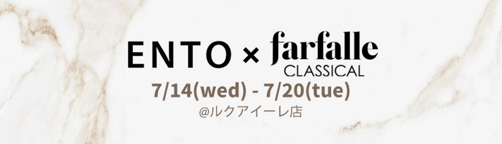 上記期間限定で、ENTO×ファルファーレクラシカルのPOPUPを開催いたします。