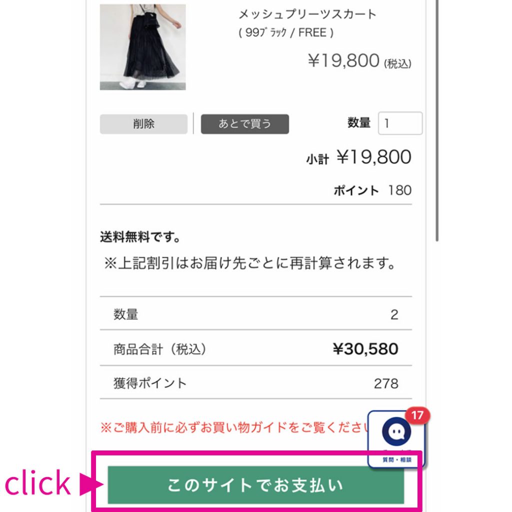 商品をカートに入れて「このサイトでお支払い」をクリックして次に進んでください。