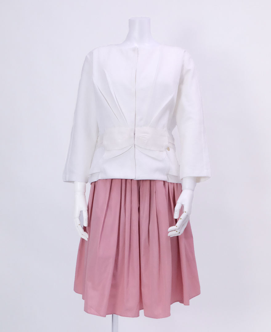 少し改まった席へのお出かけには、白のリボンジャケットで。