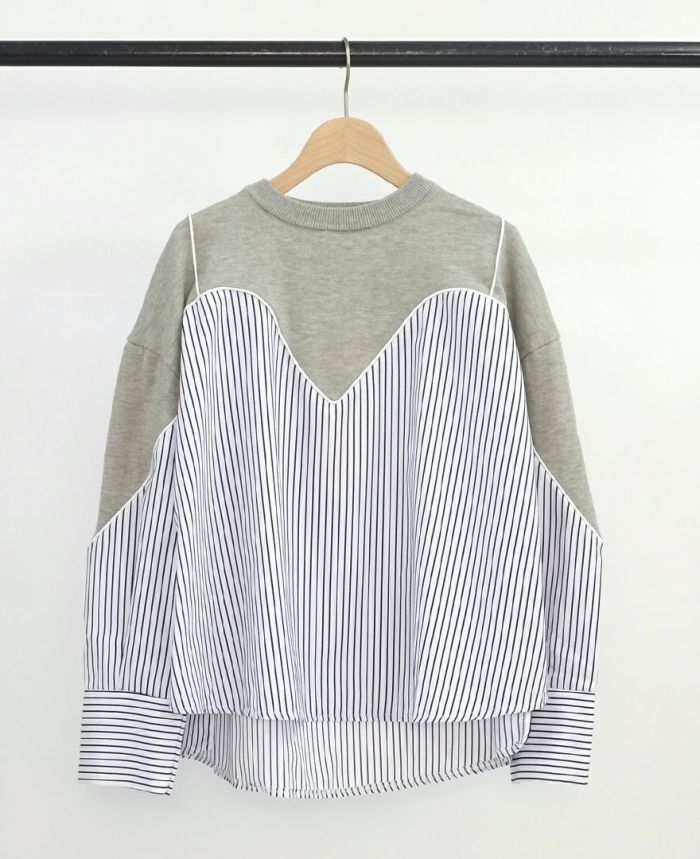 色合わせが楽しめるスカートのトップスには、遊び心のあるドッキングプルオーバーで。