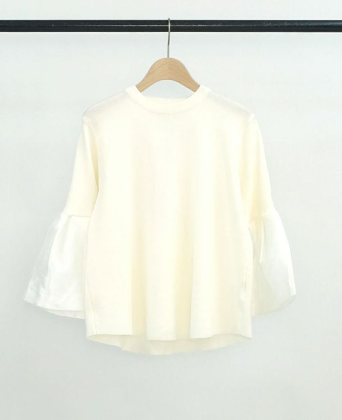 トレコードの人気アイテムデコ袖のトップスは、膨らんだ部分に光沢があり着ていると褒められるコーデに。
