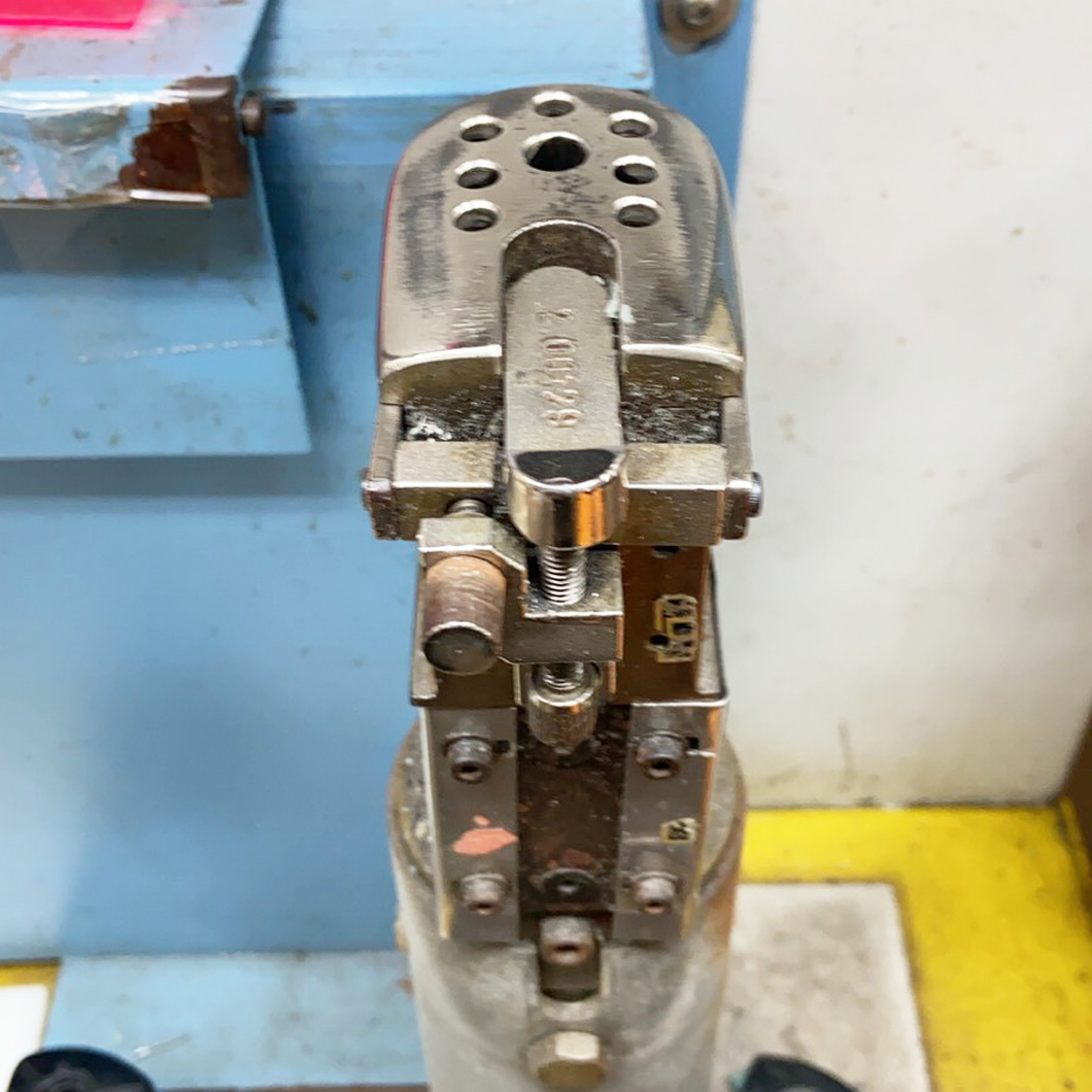 画像はヒールと中底を繋ぎ固定する釘を打つ機械。