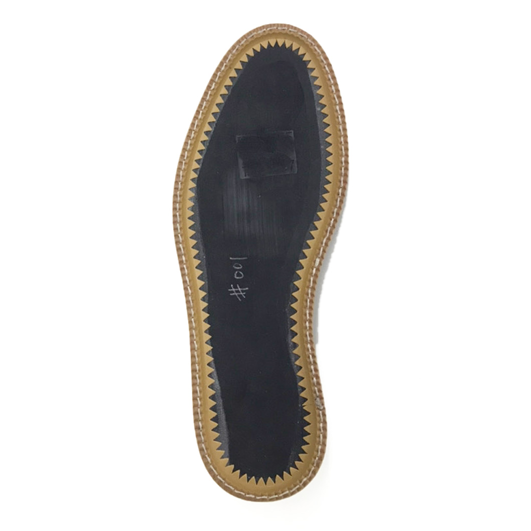 吊り込みによって餃子のように甲材の凹凸のシワ寄せが出来ているため、平らな本底とみっちり定着させるためにバフがけを行います。