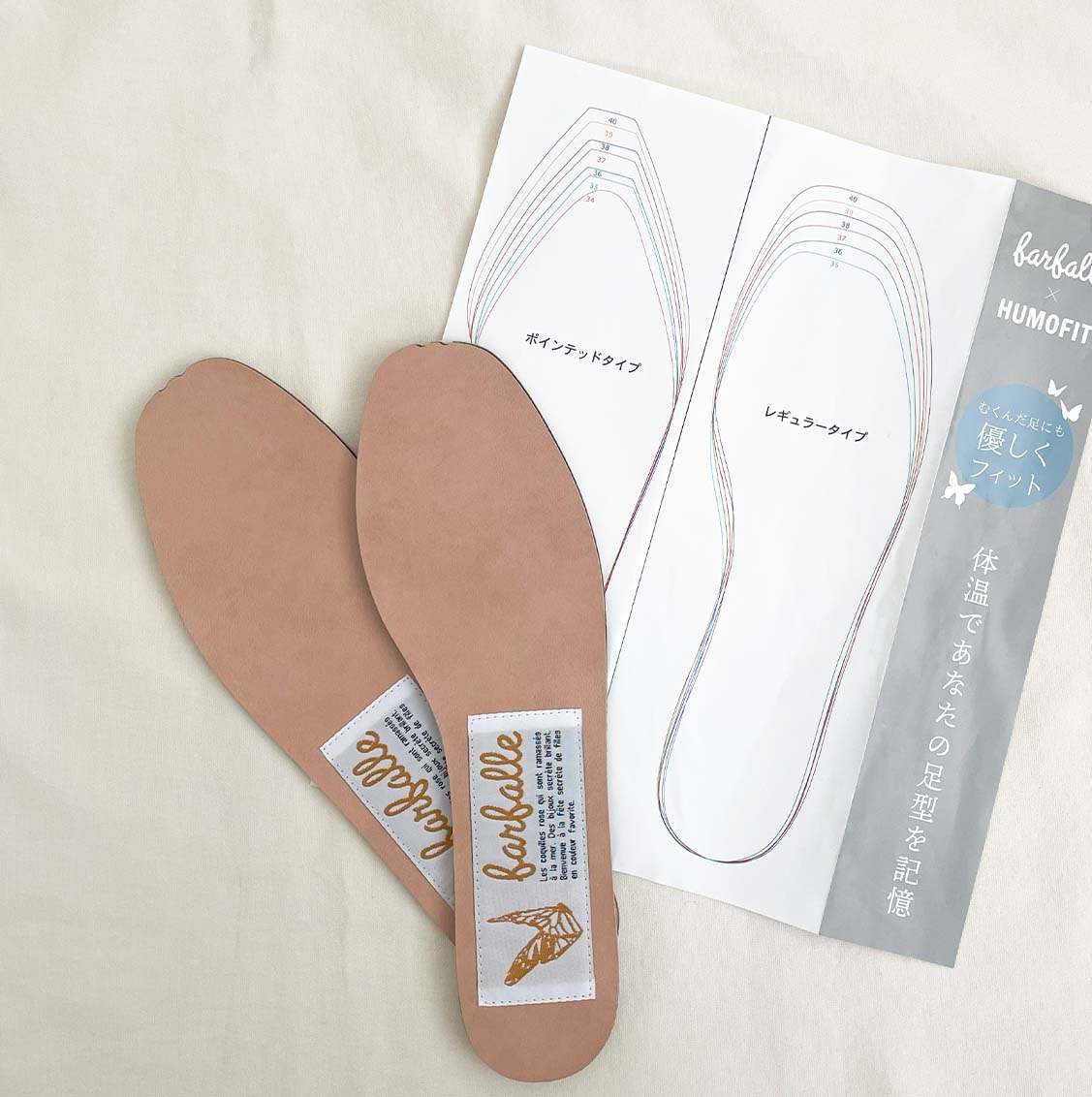 神戸発のバレエシューズブランド「farfalle(ファルファーレ)」では、インソールにヒューモフィット®を使用したアップルレザースムースのフラットバレエシューズ「アンジュ」と、サイズ調整用のファルファーレオリジナルインソール「中敷き(ヒューモフィット(R)入り)」がございます。