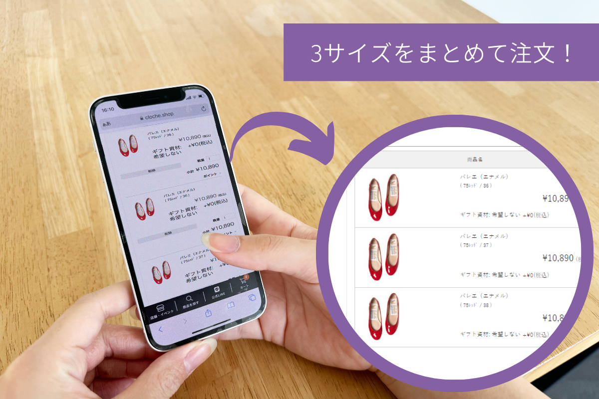 例えば、バレエ(エナメル)とナタリー(エナメル)を購入されたい場合、それぞれのご希望カラーの36サイズ、37サイズをまとめてご注文下さい。(合計4足分)ご試着後、ご不要となりましたサイズを、ご返品くださいませ。 -