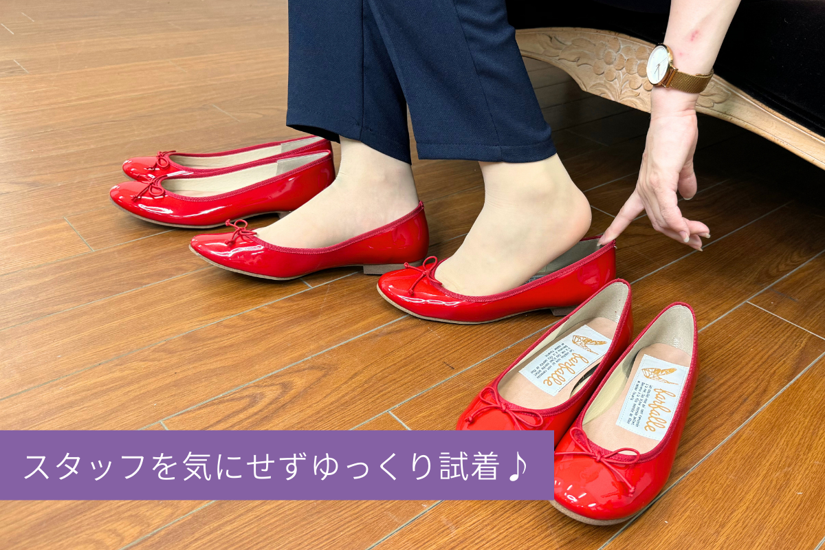 ご試着サービスは使えますか?A.ふるさと納税品でバレエ(エナメル)をご購入の場合は「ご試着サービス」をご利用いただけません。交換1回無料とさせていただきますので、ご試着は足裏の汚れない室内でお願いいたします。