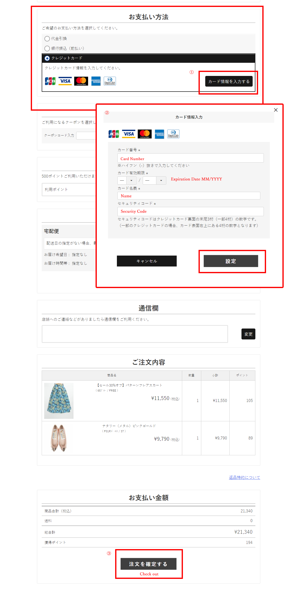 カード名義人 = Name on the card