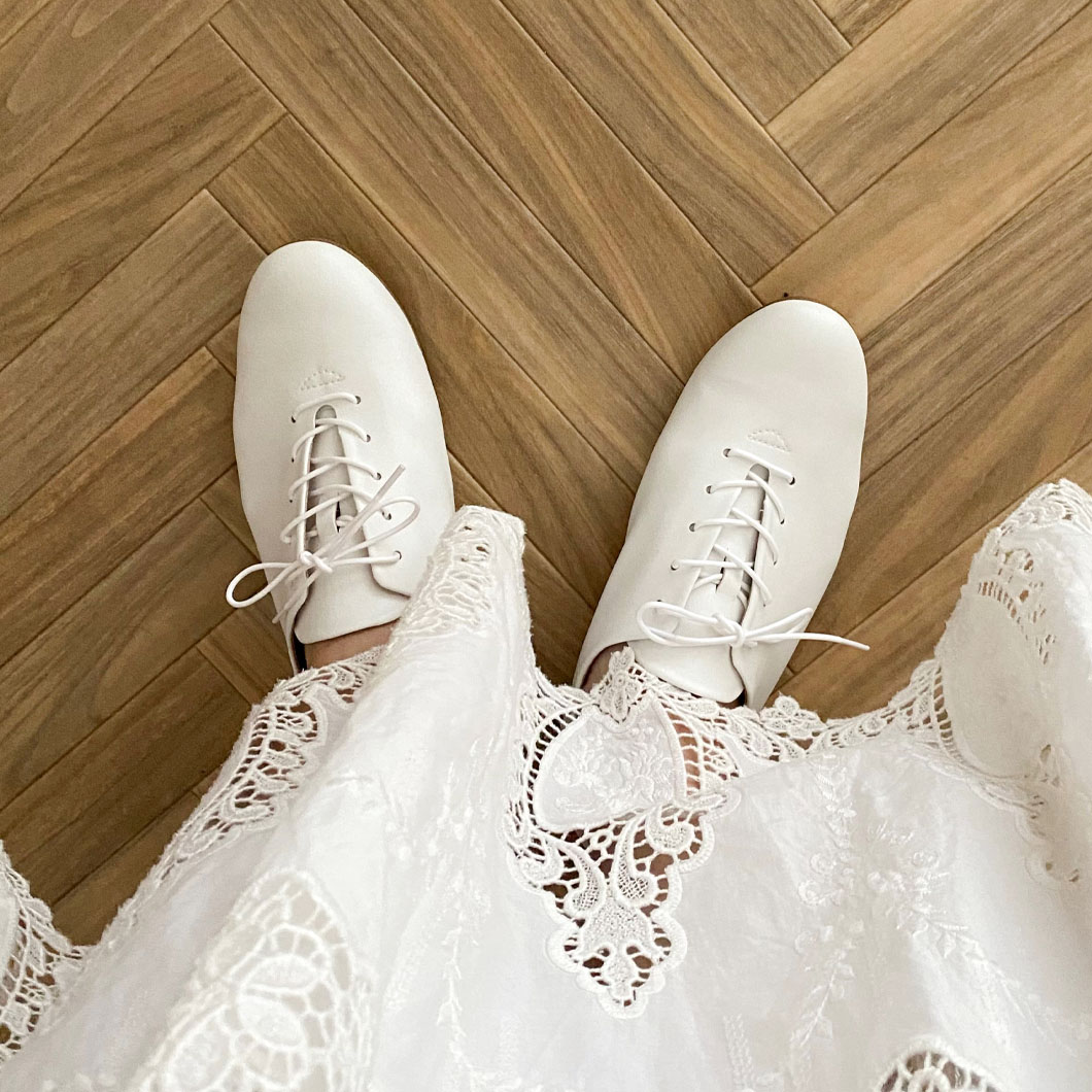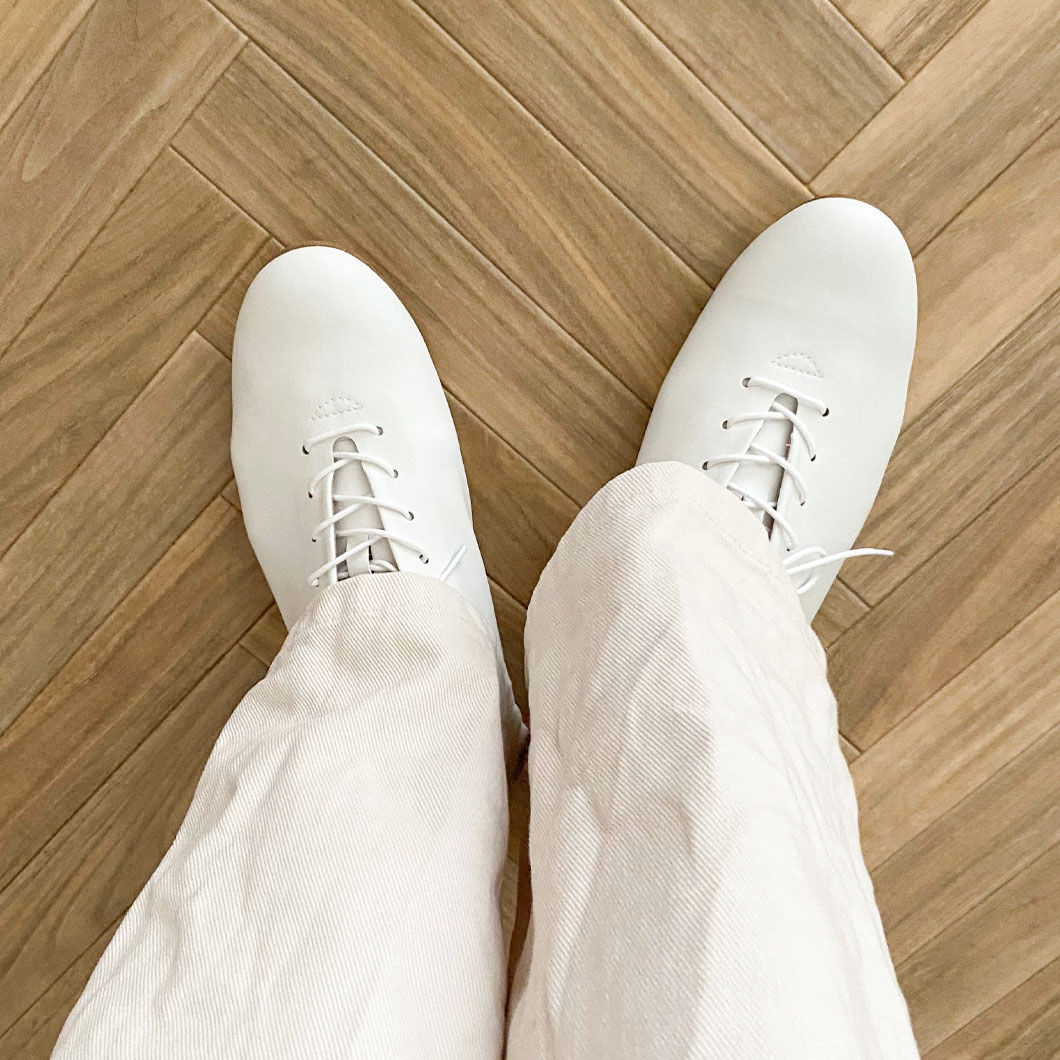 普段はスニーカーでカジュアルにまとめがちですが、白のレースアップシューズを合わせると程よくきちんと感が出ます♡