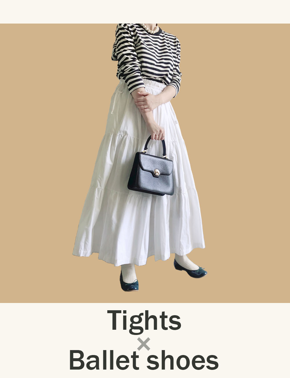ラウンドトゥのバレエシューズを合わせれば気分はパリシック!